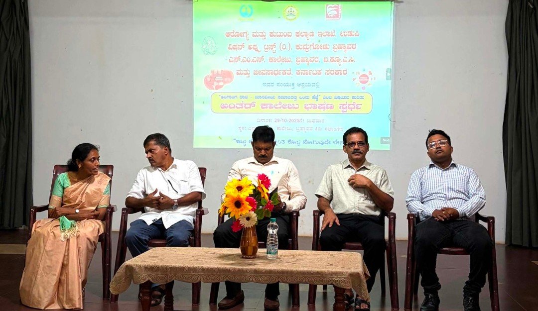 ಬ್ರಹ್ಮಾವರ : ದಿನಾಂಕ 29 /10/2025 ಆರೋಗ್ಯ ಮತ್ತು ಕುಟುಂಬ ಕಲ್ಯಾಣ ಇಲಾಖೆ ಉಡುಪಿ, ವಿಷನ್ ಅಪ್ಪು ಟ್ರಸ್ಟ್( ರಿ.) ಕುಮ್ರಗೋಡು ಬ್ರಹ್ಮಾವರ, ಎಸ್.ಎಂ.ಎಸ್. ಕಾಲೇಜ್, ಬ್ರಹ್ಮಾವರ, ಐ.ಕ್ಯೂ.ಎ.ಸಿ ಜೀವಸಾರ್ಥಕತೆ ಕರ್ನಾಟಕ ಸರ್ಕಾರ ಇದರ ಸಂಯುಕ್ತ ಆಶ್ರಯದಲ್ಲಿ “ಅಂಗಾಂಗದಾನ- ಮಾನವೀಯ ಸಮಾಜದತ್ತ ಒಂದು ಹೆಜ್ಜೆ ” ಎಂಬ ವಿಷಯದ ಕುರಿತು ಅಂತರ್ ಕಾಲೇಜು ಭಾಷಣ ಸ್ಪರ್ಧೆ ಕಾರ್ಯಕ್ರಮ ಎಸ್.ಎಂ.ಎಸ್. ಕಾಲೇಜು ಬ್ರಹ್ಮಾವರ ಕಿರು ಸಭಾಂಗಣದಲ್ಲಿ ನಡೆಯಿತು.