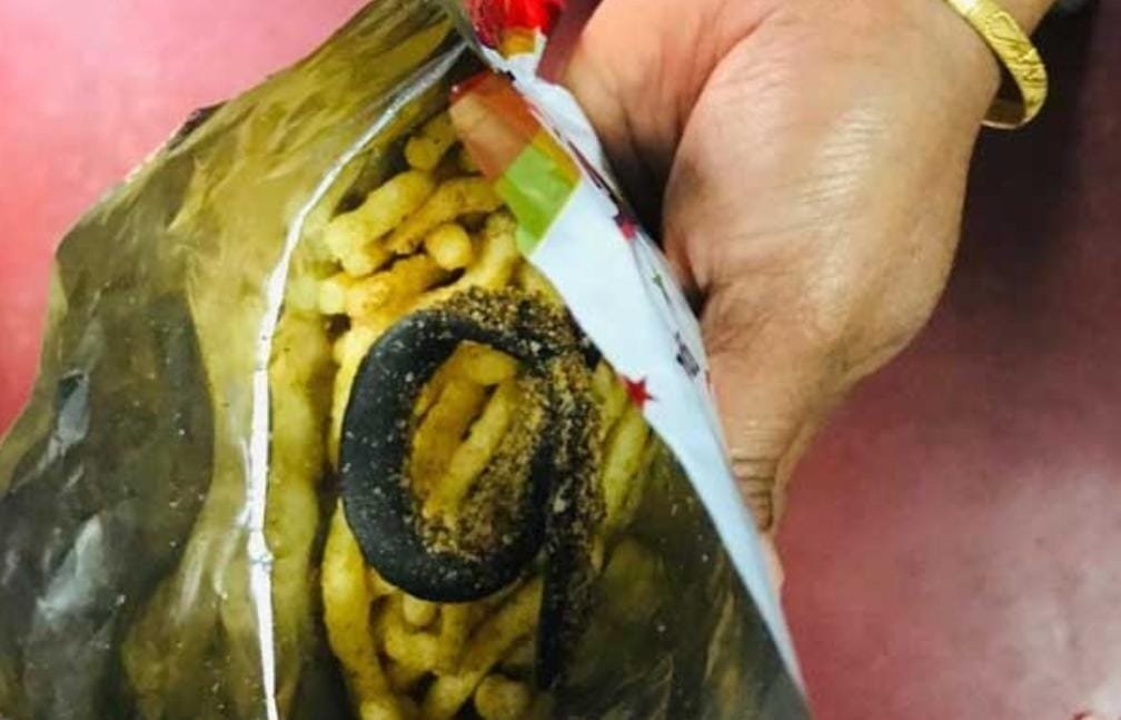 ಮಂಗಳೂರು : ಮುಂಡಾಜೆಯ ಸೋಮಂತಡ್ಕದ ಅಂಗಡಿಯೊಂದರಲ್ಲಿ ಖರೀದಿಸಿದ ಜಂಕ್ ಫುಡ್ ಪೊಟ್ಟಣದಲ್ಲಿ ಸುಟ್ಟು ಕರಕಲಾದ ಸಣ್ಣ ಹಾವಿನ ರೀತಿಯ ವಸ್ತು ಪತ್ತೆಯಾದ ಘಟನೆ ನಡೆದಿದೆ.