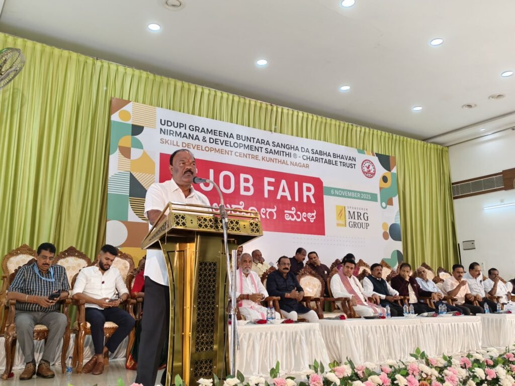 ಉಡುಪಿ : ಗ್ರಾಮೀಣ ಬಂಟರ ಸಂಘದ ಸಭಾಭವನ ನಿರ್ಮಾಣ ಮತ್ತು ಅಭಿವೃದ್ಧಿ ಸಮಿತಿ ಚಾರಿಟೇಬಲ್ ಟ್ರಸ್ಟ್ ವತಿಯಿಂದ ಎಂ.ಆರ್.ಜಿ ಗ್ರೂಪ್ ಪ್ರಾಯೋಜಕತ್ವದಲ್ಲಿ ಕುಂತಳನಗರ ಉಡುಪಿ ಗ್ರಾಮೀಣ ಬಂಟರ ಸಂಘದ ಆಶಾ ಪ್ರಕಾಶ್ ಶೆಟ್ಟಿ ಕನ್ವೆಂಶನ್ ಸೆಂಟರ್ ಹಾಗೂ ಸ್ಕಿಲ್ ಡೆವಲಪ್ಮೆಂಟ್ ಸೆಂಟರ್ ಸಭಾಭವನದಲ್ಲಿ ಇಂದು ಆಯೋಜಿಸಿರುವ “ಬೃಹತ್ ಉದ್ಯೋಗ ಮೇಳ” ಇದರ ಉದ್ಘಾಟನೆಯನ್ನು ಶಾಸಕರಾದ ಗುರ್ಮೆ ಸುರೇಶ್ ಶೆಟ್ಟಿ ಅವರು ನೆರವೇರಿಸಿ ಶುಭಹಾರೈಸಿದರು.