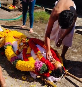 ಚಿತ್ರನಟ, ಕೆಜಿಎಫ್ ಚಾಚಾ – ಲೆಜೆಂಡ್ ಓಂನ ರಾಯ್ ಹರೀಶ್ ಆಚಾರ್ಯ ಮೃತಪಟ್ಟಿದ್ದು ಉಡುಪಿಯಲ್ಲಿ ಮೃತ ದೇಹದ ಅಂತಿಮ ವಿಧಿ ವಿಧಾನ ನಡೆಯಿತು. ಅಂಬಲಪಾಡಿಯಲ್ಲಿರುವ ಮೂಲ ಮನೆಯಲ್ಲಿ ತುಳು ಶಿವಳ್ಳಿ ಮಹತ್ವ ಬ್ರಾಹ್ಮಣ ಸಂಪ್ರದಾಯದ ಮೂಲಕ ಮೃತದೇಹಕ್ಕೆ ಗೌರವ ಸಲ್ಲಿಸಲಾಯಿತು. ತುಳಸಿ ಕಟ್ಟೆ ಸಮೀಪ ಹರೀಶ್ ಆಚಾರ್ಯ ಮೃತ ದೇಹವನ್ನು ಶುಚಿಗೊಳಿಸುವ ಕೆಲಸ ನಡೆಸಿದ ಕುಟುಂಬಸ್ಥರು, ತೀರ್ಥವನ್ನು ನೀಡಿ ಅಗಲಿದ ಆತ್ಮಕ್ಕೆ ಶಾಂತಿಗಾಗಿ ಪ್ರಾರ್ಥಿಸಿದರು. ಹರೀಶ್ ರಾಯ್ ಕಿರಿಯ ಪುತ್ರ ಮೃತ ದೇಹದ ಪಕ್ಕದಲ್ಲಿ ಕಣ್ಣೀರಿಡುತ್ತಾ, ಗಡ್ಡ ಮೀಸೆಯನ್ನು ಸವರುತ್ತಾ ಕೂತಿದ್ದನ್ನು ಕಂಡು, ಕುಟುಂಬಸ್ಥರು ಕಣ್ಣೀರು ಸುರಿಸಿದರು. ತನ್ನ ಮನೆಯಲ್ಲಿರುವ ಪ್ರೀತಿಯ ಶ್ವಾನವನ್ನು ಮೃತ ದೇಹದ ಬಳಿ ಸಹೋದರ ಸತೀಶ್ ಆಚಾರ್ಯ ಕರೆತಂದರು. ಮನೆಯ ನಾಯಿಯನ್ನು ಹರೀಶ್ ರಾಯ್ ಬಹಳವಾಗಿ ಪ್ರೀತಿಸುತ್ತಿದ್ದರು. ನನ್ನ ಸಹೋದರ ಆ ಕಾಲದಲ್ಲಿ ಉಡುಪಿಯ ಹೀರೋ ಆಗಿದ್ದ. ಕೃಷ್ಣಮಠದ ಪರ್ಯಾಯದ ಸ್ಟೇಜ್ ಪರ್ಫಾರ್ಮೆನ್ಸ್ ಕೊಡುತ್ತಿದ್ದ ದಿನಗಳನ್ನು ಸಹೋದರಿ ನೆನಪು ಮಾಡಿಕೊಂಡರು. ಅನಾರೋಗ್ಯವನ್ನು ಕಡೆಗಣಿಸಿದ್ದೆ ಸಾವಿಗೆ ಕಾರಣವಾಯಿತು ಎಂದು ನೊಂದುಕೊಂಡರು.