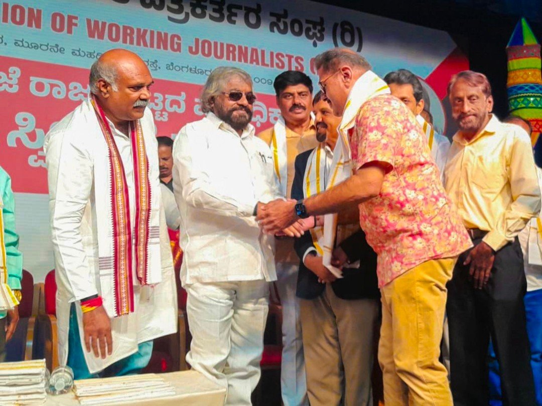 ಬೆಂಗಳೂರು : ನಗರದ ಗಾಂಧಿಭವನದಲ್ಲಿ ನ. 24 ರಂದು ಜರಗಿದ ಕರ್ನಾಟಕ ಕಾರ್ಯನಿರತ ಪತ್ರಕರ್ತರ ಸಂಘದ ನೂತನ ಪದಾಧಿಕಾರಿಗಳ ಅಧಿಕಾರ ಸ್ವೀಕಾರ ಸಮಾರಂಭದಲ್ಲಿ ಸಚಿವ ಈಶ್ವರ್ ಖಂಡ್ರೆ ಅವರಿಂದ ಉಡುಪಿ ಜಿಲ್ಲಾ ಸಂಘದಿಂದ ರಾಜ್ಯ ಸಂಘಕ್ಕೆ ಆಯ್ಕೆ ಆದ ಆಸ್ಟ್ರೋ ಮೋಹನ್ ಪದಗ್ರಹಣ ಸ್ವೀಕರಿಸಿದರು.