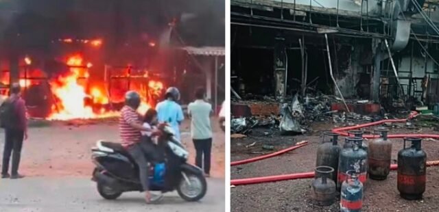 ಸಿಲಿಂಡರ್ ಸ್ಫೋಟಗೊಂಡ ಪರಿಣಾಮ ಈ ಅವಘಡ ಸಂಭವಿಸಿದ್ದು ರೆಸ್ಟೋರೆಂಟ್ ಸಂಪೂರ್ಣ ಸುಟ್ಟು ಕರಕಲಾಗಿದೆ.