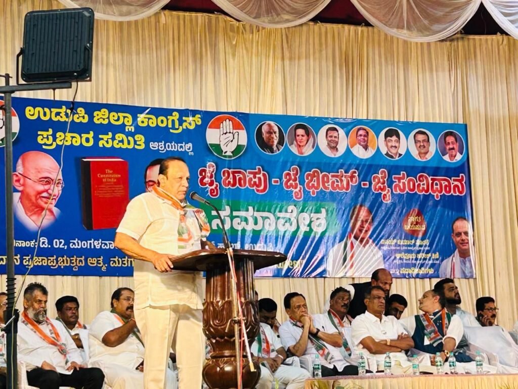 ಉಡುಪಿ : ಜಿಲ್ಲಾ ಕಾಂಗ್ರೆಸ್ ಪ್ರಚಾರ ಸಮಿತಿ ಆಶ್ರಯದಲ್ಲಿ ಜೈ ಬಾಪು ಜೈ ಭೀಮ್ – ಜೈ ಸಂವಿಧಾನ ಸಮಾವೇಶವು ಉಡುಪಿಯ ಅಜ್ಜರಕಾಡು ಪುರಭವನದಲ್ಲಿ ನಡೆಯಿತು. ಸಮಾವೇಶವನ್ನು ಕಾಂಗ್ರೆಸ್ ಪ್ರಚಾರ ಸಮಿತಿಯ ರಾಜ್ಯ ಉಪಾಧ್ಯಕ್ಷ, ಉಡುಪಿ ಜಿಲ್ಲೆಯ ಪ್ರಚಾರ ಸಮಿತಿಯ ಉಸ್ತುವಾರಿ ಕಿಮ್ಮನೆ ರತ್ನಾಕರ್ ಅವರು ಸಂವಿಧಾನದ ಪೀಠಿಕೆಯನ್ನು ಓದುವ ಮೂಲಕ ಉದ್ಘಾಟಿಸಿದರು. ಬಳಿಕ ಮಾತನಾಡಿದ ಅವರು, ಗಾಂಧಿ ವಿಚಾರ ಧಾರೆಗಳು, ಜೀವನ ಚರಿತ್ರೆ, ಸೈದ್ಧಾಂತಿಕ ನಿಲುವುಗಳನ್ನು ಕಾರ್ಯಕರ್ತರಿಗೆ ತಲುಪಿಸಿ ಕಾಂಗ್ರೆಸ್ ಪಕ್ಷ ಸಂಘಟಿಸಬೇಕಾಗಿದೆ ಎಂದರು. ಬಿಜೆಪಿಯವರು ದೇಶ ಕಟ್ಟುವ ಬದಲು ಧರ್ಮ ಕಟ್ಟುತ್ತಿದ್ದಾರೆ . ಇದರಿಂದ ದೇಶಕ್ಕೆ ಉಪಯೋಗವಿಲ್ಲ. ಅಲ್ಲದೇ ಗಾಂಧಿ, ನೆಹರು ಅವರನ್ನು ಬಿಜೆಪಿಯು ವಿರೂಪಗೊಳಿಸುತ್ತಿದೆ. ಹಾಗಾಗಿ ಕಾಂಗ್ರೆಸ್ ಪಕ್ಷವು ಗಾಂಧಿ ಚಿಂತನೆಗಳನ್ನು ಜನಸಾಮಾನ್ಯರಿಗೆ ತಿಳಿಸುವ ಪ್ರಯತ್ನ ಮಾಡಬೇಕಾಗಿದೆ ಎಂದರು.