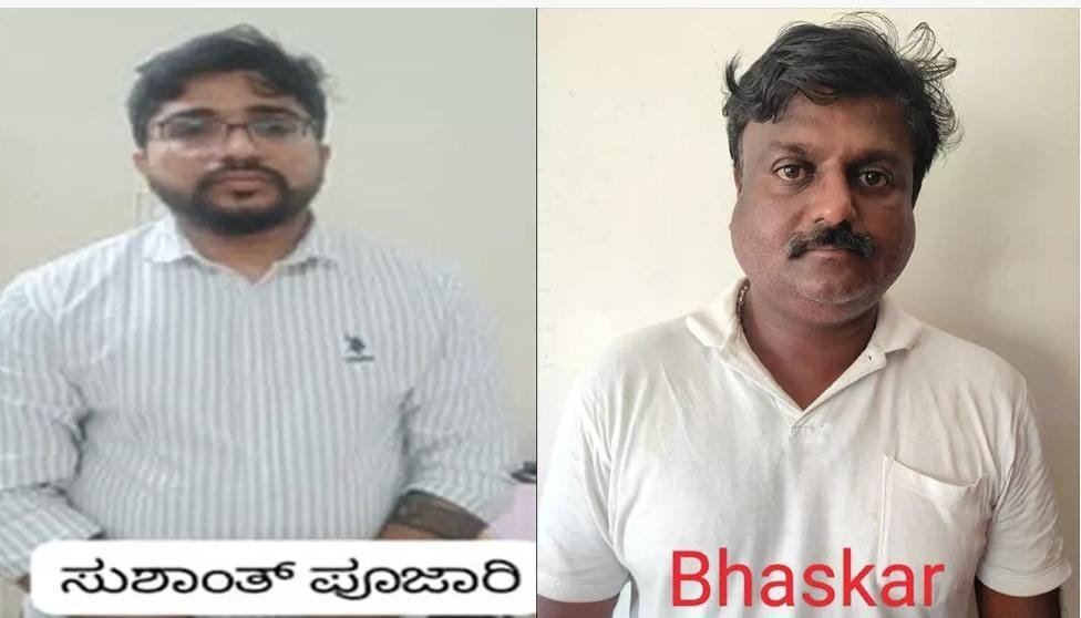 ಬಂಧಿತರನ್ನು ಸುಶಾಂತ್ ಪೂಜಾರಿ ಯಾನೆ ಸುಶಾಂತ್ ಅಂಕುಶ್ ಪೂಜಾರಿ ಯಾನೆ ಸುಶಾಂತ್ ಜಿ. ಕಕೇರಾ (32) ಮತ್ತು ಭಾಸ್ಕರ ಎಂದು ಗುರುತಿಸಲಾಗಿದೆ.