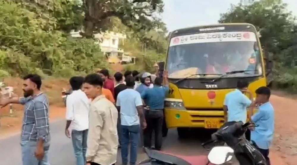 ಶಾಲಾ ಬಸ್ ಸ್ಕೂಟರ್ ಒಂದಕ್ಕೆ ಡಿಕ್ಕಿ ಹೊಡೆಯಲು ಸಂಭವವಿತ್ತು ಎಂದು ಆರೋಪಿಸಿ ಗುಂಪೊಂದು ಶಾಲಾ ಬಸ್ ತಡೆದಿದೆ. ಕಲ್ಲಡ್ಕ ಪ್ರಭಾಕರ್ ಭಟ್ ನೇತೃತ್ವದ ಶ್ರೀರಾಮ ವಿದ್ಯಾಕೇಂದ್ರಕ್ಕೆ ಸೇರಿದ ಬಸ್ ಇದಾಗಿದೆ.