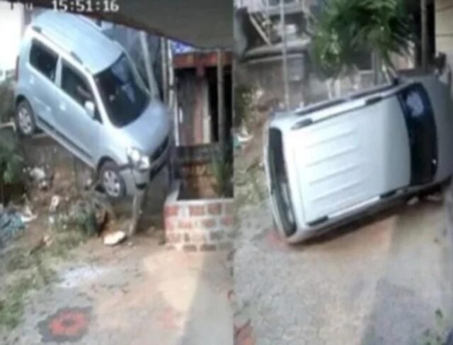 ಘಟನೆಯ ಸಿಸಿಟಿವಿ ದೃಶ್ಯಾವಳಿಯಲ್ಲಿ ಕಾರು ರಸ್ತೆಯಿಂದ ಹೊರಟು ರಸ್ತೆಯ ಪಕ್ಕದಲ್ಲಿರುವ ಮನೆಯ ಅಂಗಳದಲ್ಲಿ ಪಕ್ಕಕ್ಕೆ ಬಿದ್ದಿದೆ.
