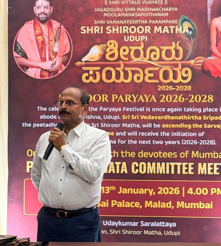 ಇಂದು ಸಂಜೆ ಮಲಾಡ್ ಪಶ್ಚಿಮದ ಎವರ್ಶೈನ್ ನಗರದಲ್ಲಿನ ಹೋಟೆಲ್ ಸಾಯಿ ಪ್ಯಾಲೇಸ್ ಗ್ರಾಂಡ್ನ ಸಭಾಗೃಹದಲ್ಲಿ ಪರ್ಯಾಯ ಸ್ವಾಗತ ಸಮಿತಿಯು ಮುಂಬಯಿ ಮಹಾನಗರದಲ್ಲಿನ ಭಕ್ತರೊಂದಿಗೆ ಆಯೋಜಿಸಲಾಗಿದ್ದ ಸಭಾಧ್ಯಕ್ಷತೆ ವಹಿಸಿ ಶಾಸಕ ಯಶಪಾಲ್ ಸುವರ್ಣ ಮಾತನಾಡಿದರು.