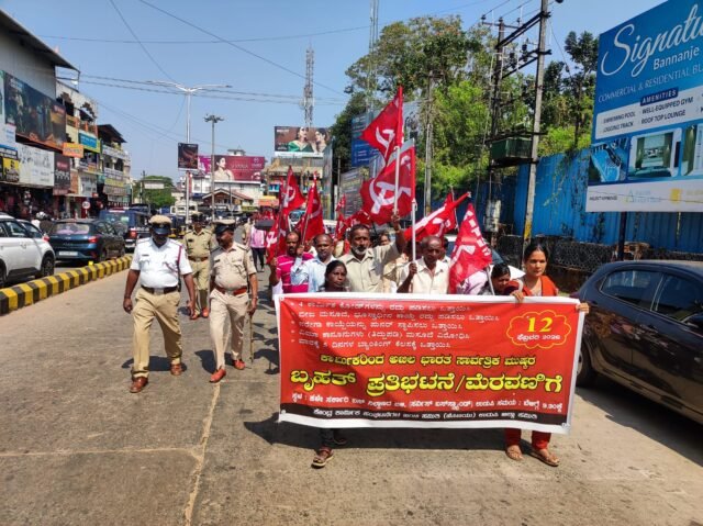 ನಗರದಲ್ಲಿ ನಡೆದ ಪ್ರತಿಭಟನಾ ಸಭೆಯ ನಂತರ ಮೆರವಣಿಗೆ ನಡೆಸಿದ ಪ್ರತಿಭಟನಾಕಾರರು ಜೊಡುಕಟ್ಟೆ ಬಳಿ ರಸ್ತೆ ತಡೆ ನಡೆಸಿ ತಮ್ಮ ಆಕ್ರೋಶ ವ್ಯಕ್ತಪಡಿಸಿದರು. ಸಭೆಯನ್ನು ಉದ್ದೇಶಿಸಿ ಮಾತನಾಡಿದ ಸಿಐಟಿಯು ರಾಜ್ಯ ಕಾರ್ಯದರ್ಶಿ ಸುರೇಶ್ ಕಲ್ಲಾಗಾರ್, ಕಾರ್ಮಿಕ ವಿರೋಧಿ ನೀತಿಗಳನ್ನು ಸರ್ಕಾರ ತಕ್ಷಣವೇ ಹಿಂಪಡೆಯಬೇಕು ಎಂದು ಒತ್ತಾಯಿಸಿದರು.