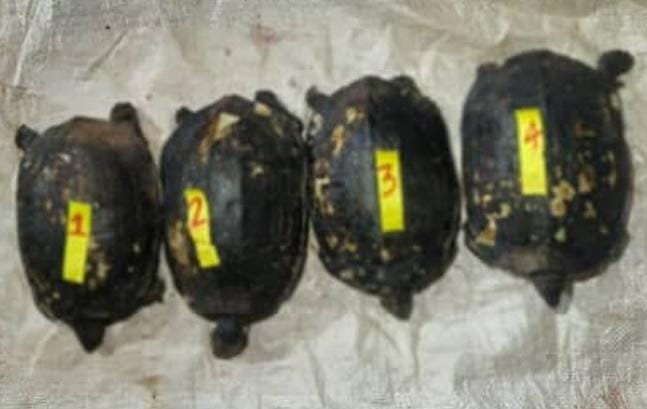 ಉಜಿರೆ: ತಿಥಿಯ ಅಡುಗೆಗೆ ನದಿಯಲ್ಲಿ ಆಮೆ ಬೇಟೆಯಾಡುತ್ತಿದ್ದ ಆರೋಪದಲ್ಲಿ ಪೊಲೀಸರು ನಾಲ್ಕು ಆಮೆ ಸಹಿತ ನಾಲ್ವರು ಆರೋಪಿಗಳನ್ನು ಬಂಧಿಸಿದ್ದಾರೆ.