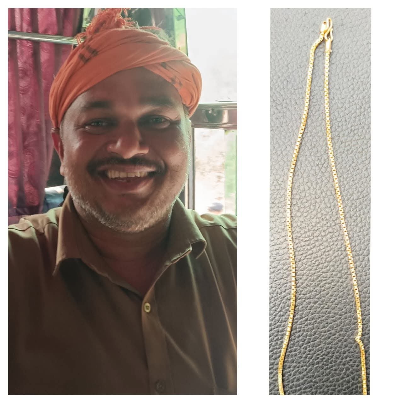 ರಾಜೇಶ್ ಅವರಿಗೆ ಬಸ್ಸಿನಲ್ಲಿ ಸುಮಾರು 3ಲಕ್ಷ ರೂ. ಬೆಲೆ ಬಾಳುವ ಚಿನ್ನದ ಸರ ಸಿಕ್ಕಿದ್ದು, ಚಿನ್ನವನ್ನು ತಮ್ಮ ಬಳಿ ಸುರಕ್ಷಿತವಾಗಿ ಇರಿಸಿಕೊಂಡು ಅವರು ಯಾವುದೇ ಲಾಭದ ಆಸೆಗೆ ಒಳಗಾಗದೆ ಚಿನ್ನ ಸಿಕ್ಕಿದ ಬಗ್ಗೆ ವಾಟ್ಸಪ್ ಮೂಲಕ ಪ್ರಚಾರ ಮಾಡಿದ್ದಾರೆ.