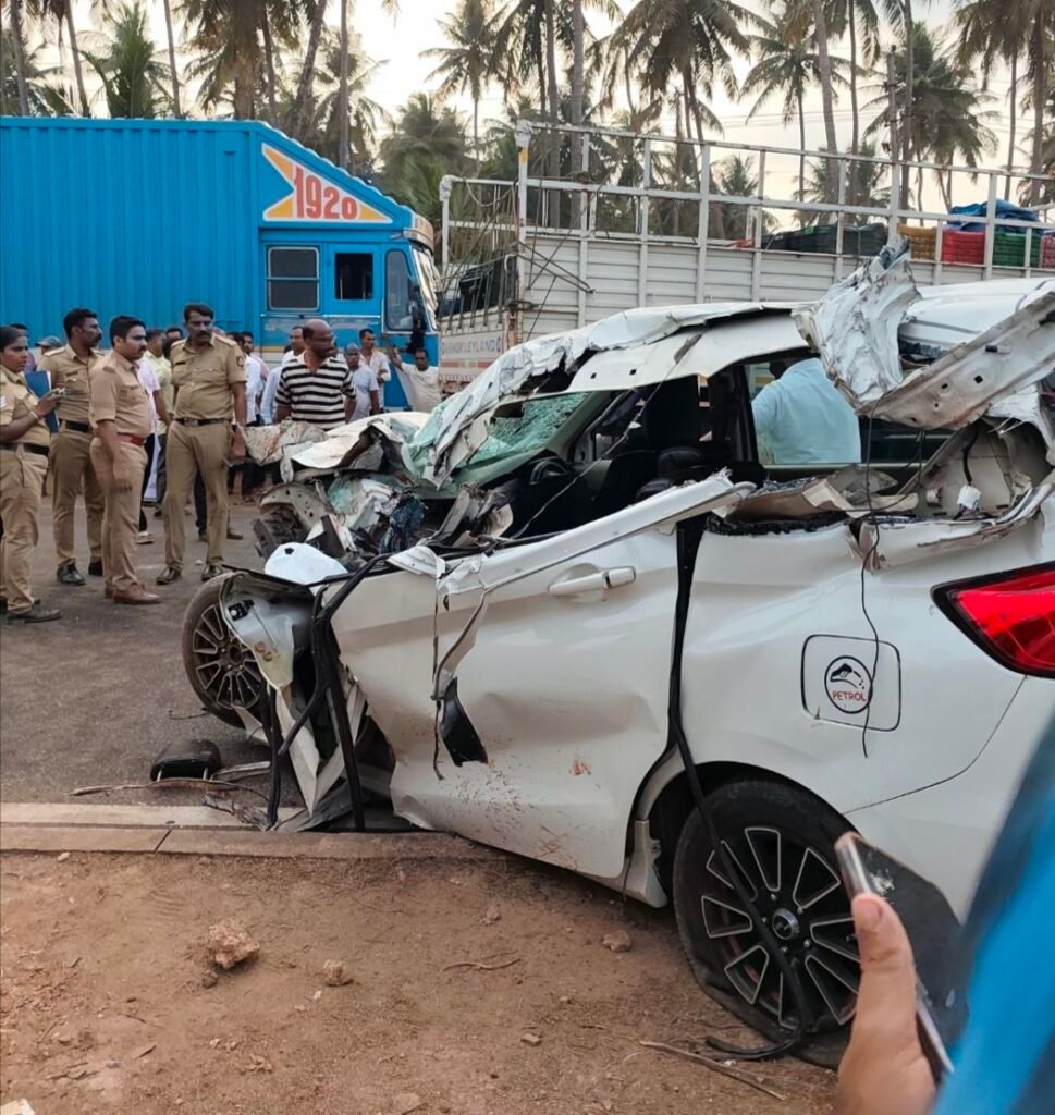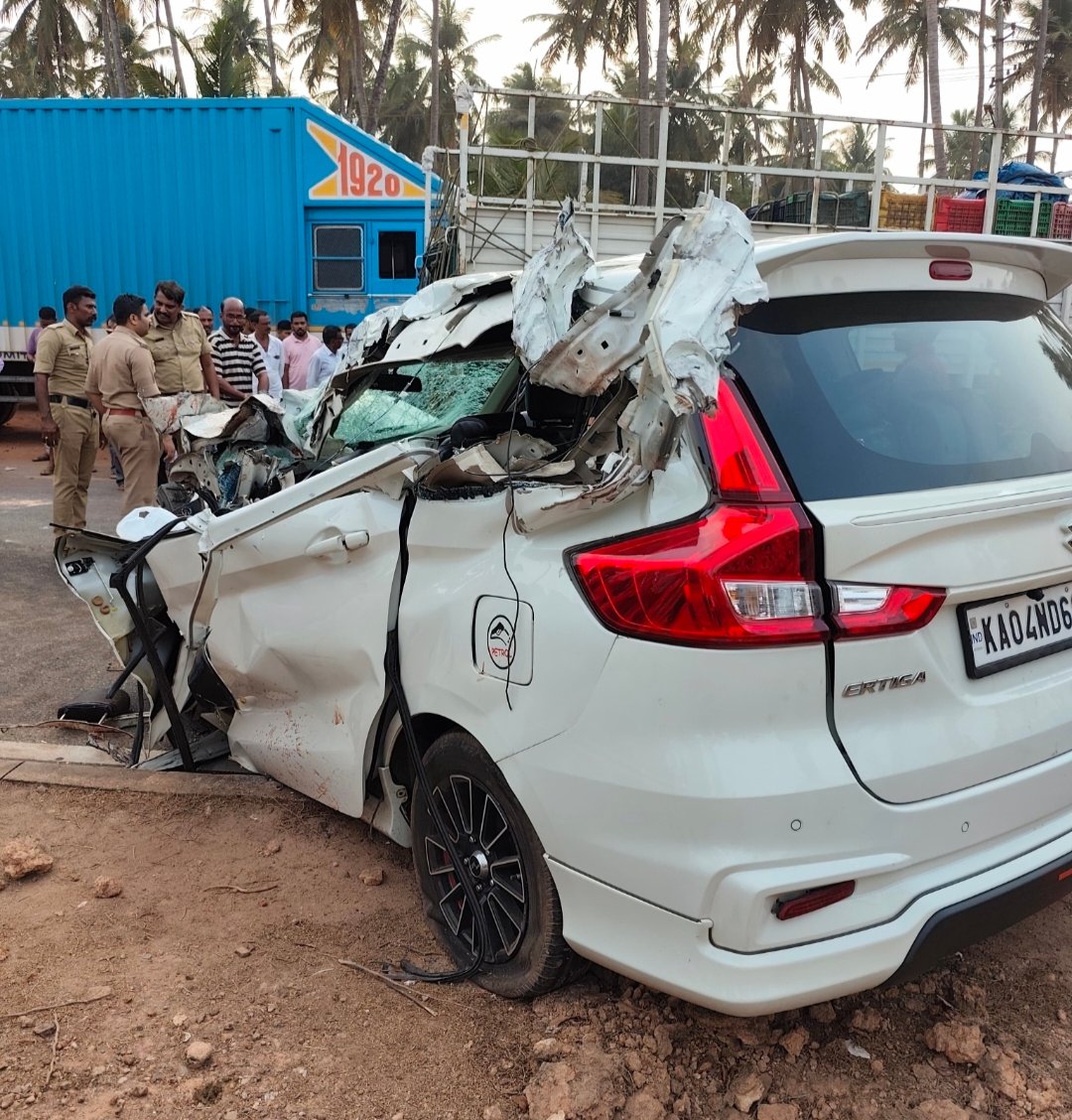 ಬೈಂದೂರು : ಉಡುಪಿ ಜಿಲ್ಲೆಯ ಬೈಂದೂರು ತಾಲೂಕಿನ ನಾವುಂದ ಸಮೀಪ ರಾಷ್ಟ್ರೀಯ ಹೆದ್ದಾರಿಯಲ್ಲಿ ನಿಂತಿದ್ದ ಕಂಟೈನರ್ಗೆ ಎರ್ಟಿಗಾ ಕಾರು ಢಿಕ್ಕಿ ಹೊಡೆದು ತಾಯಿ ಮತ್ತು ಮಗಳು ಸ್ಥಳದಲ್ಲೇ ಮೃತಪಟ್ಟ ದುರ್ಘಟನೆ ಸಂಭವಿಸಿದೆ.