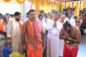 ಕಾರ್ಕಳ: ಮುಂಡ್ಕೂರು ಗ್ರಾಮದ ಸಚ್ಚೇರಿ ಗಾಂದಡ್ಪು ಶ್ರೀ ಮಹಾದೇವಿ ದೇವಸ್ಥಾನದಲ್ಲಿ ಅನಾದಿಕಾಲದಿಂದಲೂ ಪೂರ್ವಜರು ಆರಾಧಿಸಿಕೊಂಡು ಬಂದಂತಹ ಶ್ರೀ ಮಹಾದೇವಿ ಅಮ್ಮನವರ ಪುನಃ ಪ್ರತಿಷ್ಠಾ ಬ್ರಹ್ಮಕಲಶಾಭಿಷೇಕ, ಶ್ರೀ ನಾಗದೇವರ ಪುನಃ ಪ್ರತಿಷ್ಠಾ ಮಹೋತ್ಸವ ಹಾಗೂ ಶ್ರೀ ಅಣ್ಣಪ್ಪ ಸ್ವಾಮಿಯ ಪುನಃ ಪ್ರತಿಷ್ಠಾ ಕಲಶಾಭಿಷೇಕವು ಏ. 01ರ ಬುಧವಾರ ಪೊಸ್ರಾಲು ಶ್ರೀ ಮಹಾಲಿಂಗೇಶ್ವರ ದೇವಸ್ಥಾನದ ಅರ್ಚಕರಾದ ಶ್ರೀ ರಾಘವೇಂದ್ರ ಭಟ್ ಅವರ ನೇತೃತ್ವದಲ್ಲಿ ಕಡಂದಲೆ ವೇದಮೂರ್ತಿ ಶ್ರೀ ಸ್ಕಂದ ಪ್ರಸಾದ ಭಟ್ರವರ ಪೌರೋಹಿತ್ಯದಲ್ಲಿ ಶ್ರೀ ಕ್ಷೇತ್ರ ಕಟೀಲಿನ ಅನುವಂಶಿಕ ಅರ್ಚಕರಾದ ವೇದಮೂರ್ತಿ ಶ್ರೀ ಹರಿನಾರಾಯಣದಾಸ ಆಸ್ರಣ್ಣರವರ ಉಪಸ್ಥಿತಿಯಲ್ಲಿ ಬಹು ವಿಜೃಂಭಣೆಯಿಂದ ಸಂಪನ್ನಗೊಂಡಿತು. ಬೆಳಿಗ್ಗೆ ಮೀನಲಗ್ನದಲ್ಲಿ ಶ್ರೀ ದೇವರ ಪ್ರತಿಷ್ಠೆ, ನಾಗದೇವರಿಗೆ ಪಂಚ ವಿಂಶತಿ ಕಲಶಾಧಿವಾಸ, ನಾಗಬಿಂಬ ಪ್ರತಿಷ್ಠೆ, ಪ್ರಾಯಶ್ಚಿತ್ತ ಹೋಮ, ಆಶ್ಲೇಷಾ ಬಲಿ, ಅಣ್ಣಪ್ಪ ಸ್ವಾಮಿಯ ಪ್ರತಿಷ್ಠೆ ಹಾಗೂ ವಿವಿಧ ದೇವತಾ ಕಾರ್ಯಗಳು ನಡೆದ ಬಳಿಕ ಶ್ರೀ ಮಹಾದೇವಿ ಅಮ್ಮನವರ ದರ್ಶನ ಸೇವೆ, ಮಹಾಪೂಜೆ ನಡೆಯಿತು. ಬಳಿಕ ಸಾರ್ವಜನಿಕ ಅನ್ನಸಂತರ್ಪಣೆ ನಡೆಯಿತು.