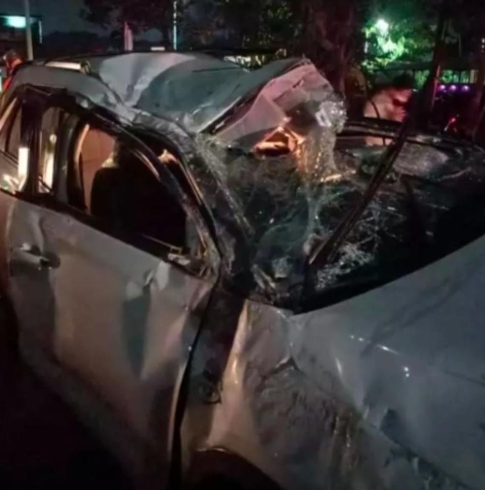 ಅತಿ ವೇಗದಲ್ಲಿದ್ದ ಕಾರು ವಿಭಜಕದಲ್ಲಿದ್ದ ವಿದ್ಯುತ್ ಕಂಬಕ್ಕೆ ಜೋರಾಗಿ ಡಿಕ್ಕಿ ಹೊಡೆದಿದ್ದು, ಅಪಘಾತದ ತೀವ್ರತೆಗೆ ವಿದ್ಯುತ್ ಕಂಬವು ಮುರಿದು ಬಿದ್ದಿದೆ.
