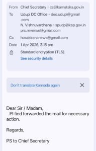 ನ್ಯಾಯಾಂಗ ನಿಂದನೆ: ಮಾರ್ಚ್ 26ರೊಳಗೆ ತೆರವುಗೊಳಿಸುವಂತೆ ಉಪಲೋಕಾಯುಕ್ತರು ನೀಡಿದ್ದ ಆದೇಶವನ್ನು ತಹಶೀಲ್ದಾರ್ ಪ್ರದೀಪ್ ಕುರಡೇಕಾರ್ ಮತ್ತು ಸಿಬ್ಬಂದಿಗಳು ಪಾಲಿಸದೆ ಕರ್ತವ್ಯ ಲೋಪ ಎಸಗಿದ್ದಾರೆ ಎಂದು ದೂರಿನಲ್ಲಿ ತಿಳಿಸಲಾಗಿದೆ.