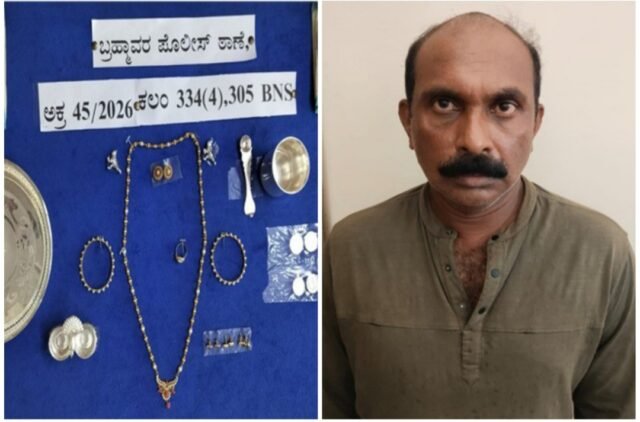 ಬಂಧಿತ ಆರೋಪಿಯನ್ನು ಪ್ರವೀಣ್ ಕುಮಾರ್ ಕೆ (ಬಾರಕೂರು ನಿವಾಸಿ) ಎಂದು ಗುರುತಿಸಲಾಗಿದ್ದು, ಆತನಿಂದ ಸುಮಾರು ₹14 ಲಕ್ಷ ಮೌಲ್ಯದ ಚಿನ್ನಾಭರಣ ಹಾಗೂ ₹7,500 ನಗದು ವಶಪಡಿಸಿಕೊಳ್ಳಲಾಗಿದೆ.