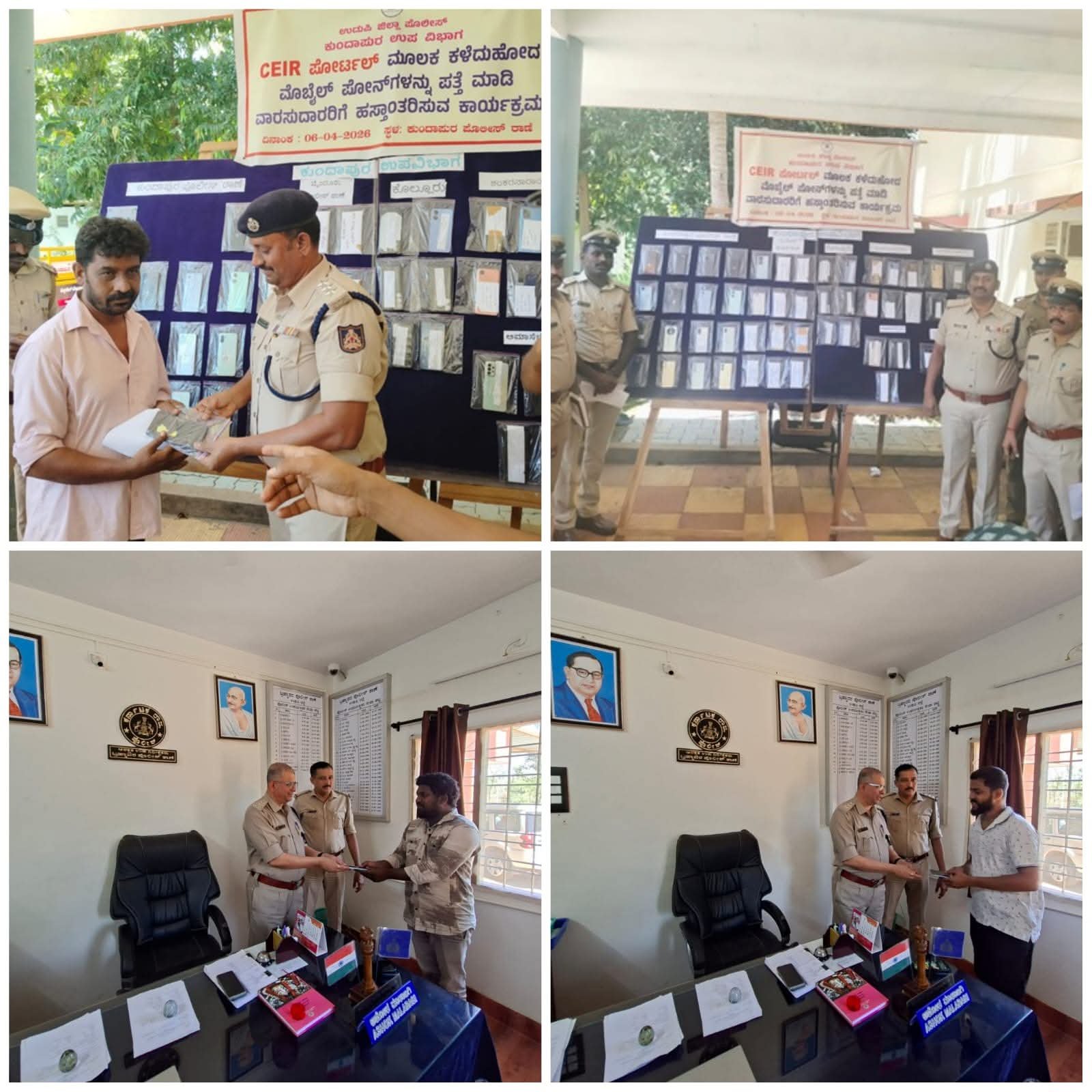 ಉಡುಪಿ : ಜಿಲ್ಲೆಯ ವಿವಿಧ ಠಾಣೆಗಳ್ಲಿ ಮೊಬೈಲ್ ಕಳೆದುಕೊಂಡು ಸಿ.ಇ.ಐ.ಆರ್ ಪೋರ್ಟ್ಲ್ ಮೂಲಕ ದೂರು ದಾಖಲಿಸಿದ್ದ ಮೊಬೈಲ್’ )ಗಳ ಪೈಕಿ ಕಳೆದ ಒಂದು ವಾರದಲ್ಲಿ ವಿಶೇಷ ಕಾರ್ಯಾಚರಣೆ ನಡೆಸಿ ಪತ್ತೆ ಮಾಡಿರುವ ಮೊಬೈಲ್ಗಳನ್ನು ಜಿಲ್ಲೆಯ ಎಲ್ಲಾ ಉಪ ವಿಭಾಗದ ಪೊಲೀಸ್ ಉಪಾಧೀಕ್ಷಕರ ನೇತೃತ್ವದಲ್ಲಿ ಮೊಬೈಲ್ ಕಳೆದುಕೊಂಡಿದ್ದ ಮೂಲ ವಾರಸುದಾರರಿಗೆ ಅವರ ಮೊಬೈಲ್’ನ್ನು ಸೋಮವಾರ ಹಿಂತಿರುಗಿಸಲಾಯಿತು. ಒಟ್ಟು 241 ಮೊಬೈಲ್’ಗಳನ್ನು ವಾರಸುದಾರರಿಗೆ ಹಸ್ತಾಂತರಿಸಲಾಯಿತು.