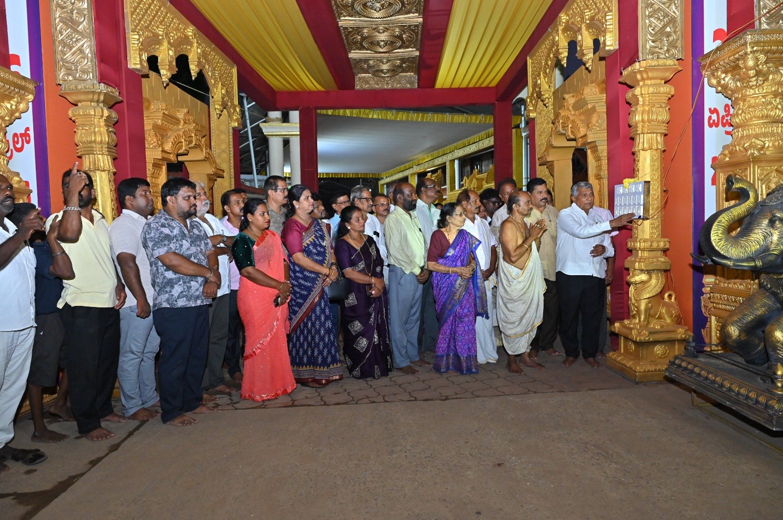 ಈ ವೇಳೆ ಮಾತನಾಡಿದ ಡಾ. ತಲ್ಲೂರು ಎಲ್ಲಿ ನಾವು ದೀಪವನ್ನು ಬೆಳಗುತ್ತೇವೊ ಅಲ್ಲಿ ಭಗವಂತನ ಸಾನಿಧ್ಯ ಇದ್ದೇ ಇರುತ್ತದೆ. ಭಗವಂತನಲ್ಲಿ ನಮ್ಮ ಕಷ್ಟವನ್ನು ತೋಡಿಕೊಂಡಾಗ ನಮ್ಮ ಸಮಸ್ಯೆ ಪರಿಹಾರವಾಗುತ್ತದೆ. ಭಗವಂತನನ್ನು ತೃಪ್ತಿಗೊಳಿಸುವ ಸಲುವಾಗಿ ಬ್ರಹ್ಮಕಲಶ ನಡೆಯುತ್ತಿದ್ದು ಭಕ್ತಾದಿಗಳೆಲ್ಲರೂ ಸೇರಿ ದೇವರ ಸೇವೆ ಮಾಡುವ ಮೂಲಕ ಅದನ್ನು ಯಶಸ್ವಿಗೊಳಿಸಬೇಕು. ದೇವರ ಕಾರ್ಯವನ್ನು ಎಲ್ಲೇ ಹಮ್ಮಿಕೊಂಡರೂ ಕೂಡ ಭಕ್ತರು ತಮ್ಮ ಸೇವೆಯನ್ನು ತನು ಮನ ಧನದ ಮೂಲಕ ನೀಡಿ ಯಶಸ್ವಿಗೊಳಿಸುತ್ತಾರೆ ಎಂದರು.