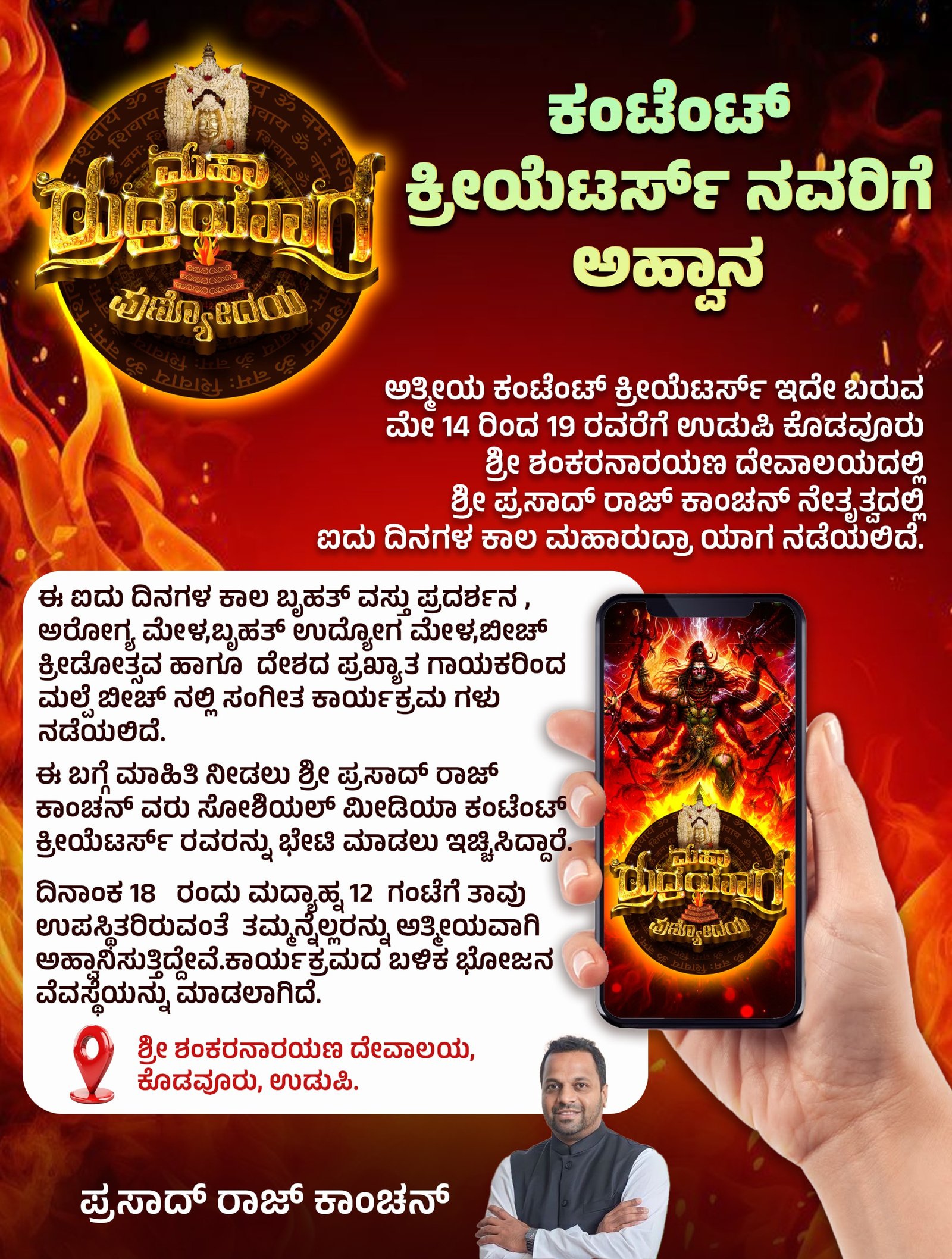 ಈ ಕಾರ್ಯಕ್ರಮಕ್ಕೆ ಹೆಚ್ಚಿನ ಸಂಖ್ಯೆಯಲ್ಲಿ ಕಂಟೆಂಟ್ ಕ್ರಿಯೇಟರ್ಸ್ ಭಾಗವಹಿಸಿ ಧಾರ್ಮಿಕ ಲಾಭ ಪಡೆಯುವಂತೆ ಸಂಘಟಕರು ಮನವಿ ಮಾಡಿದ್ದಾರೆ.