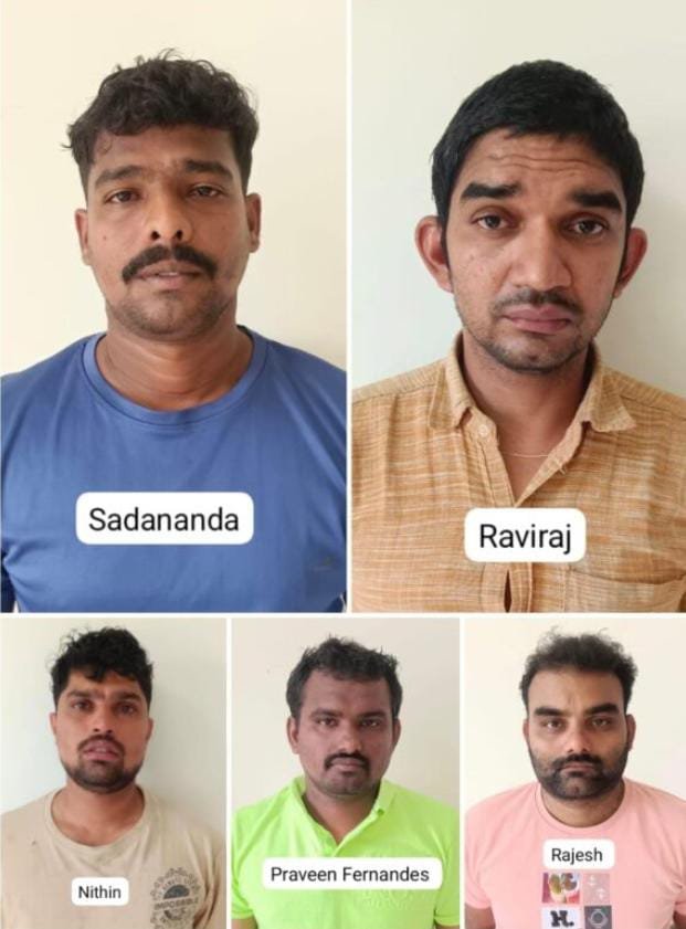 ಬಂಧಿತ ಆರೋಪಿಗಳನ್ನು ಏರ್ ಇಂಡಿಯಾ ಎಕ್ಸ್ ಪ್ರೆಸ್ ನ ಲೋಡಿಂಗ್ – ಅನ್ ಲೋಡಿಂಗ್ ಮಾಡುವ ಸಾಟ್ಸ್ ನೌಕರರಾದ ನಿತಿನ್, ಮೂಡುಪೆರಾರದ ನಿವಾಸಿಗಳಾದ ಸದಾನಂದ, ರಾಜೇಶ್, ಬಜ್ಪೆ ನಿವಾಸಿ ಪ್ರವೀಣ್ ಫೆರ್ನಾಂಡಿಸ್ ಮತ್ತು ಚಿನ್ನಾಭರಣ ಪಡೆದುಕೊಂಡು ಚಿನ್ನದ ಗಟ್ಟಿಯಾಗಿಸಿದ್ದ ಬಜ್ಪೆ ಮೂಡುಪೆರಾರ ನಿವಾಸಿ ರವಿರಾಜ್ ಎಂದು ಪೊಲೀಸರು ಮಾಹಿತಿ ನೀಡಿದ್ದಾರೆ.