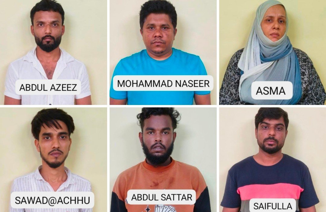 ಬಂಧಿತ ಆರೋಪಿಗಳು ಸವದ್ ಯಾನೆ ಅಚ್ಚು, ಸೈಪುಲ್ಲಾ,ಮೊಹಮ್ಮದ್ ನಾಸೀರ್ ಶರೀಫ್,ಅಬ್ದುಲ್ ಸತ್ತಾರ್,ಅಬ್ದುಲ್ ಅಜೀಜ್,ಆಸ್ಮಾ ಎಂದು ಗುರುತಿಸಲಾಗಿದೆ. ಆರೋಪಿಗಳು ಸಂದೀಪ್ ಕುಮಾರ್ ನನ್ನು ಹಣಕ್ಕಾಗಿ ಹನಿಟ್ರ್ಯಾಪ್ ಮಾಡಿದ್ದಾರೆ ಎನ್ನಲಾಗಿದೆ.