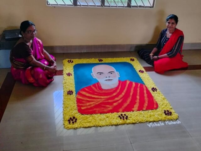 ದೇವಸ್ಥಾನಗಳ ಬಾಗಿಲು ಎಲ್ಲರಿಗೂ ತೆರೆದಿರಬೇಕು ಮತ್ತು ಧಾರ್ಮಿಕ ಸಮಾನತೆಯನ್ನು ಪ್ರತಿಪಾದಿಸಿದರು. ಈ ಸಂತನನ್ನು ನೆನೆಸಿಕೊಂಡು 171ನೇ ಜನ್ಮದಿನದ ಅಂಗವಾಗಿ ಬಾರ್ಕೂರಿನ ಕಲಾವಿದೆ. ವಿಶಾಲ ಮಹೇಶ್ ಪೂಜಾರಿ. ರಂಗೋಲಿಯಿಂದ ಬಣ್ಣ ಬಳಿದು. ಸುಮಾರು ನಾಲ್ಕು ಗಂಟೆಗಳ ಸತತ ಪರಿಶ್ರಮದಿಂದ ಐದು ಅಡಿ ಉದ್ದ ನಾಲ್ಕು ಅಡಿ ಅಗಲ ದ ರಂಗೋಲಿಯ ಕಲಾ ಕೃತಿಯನ್ನು ಬಾರ್ಕೂರಿನ ಶಿವಗಿರಿ ಕ್ಷೇತ್ರದಲ್ಲಿ.. ( ನಾರಾಯಣ ಗುರು ಮಂದಿರದಲ್ಲಿ ರಚಿಸಿದ್ದಾರೆ.. ನಾಳೆ ಗುರು ಜಯಂತಿಯ ಪ್ರಯುಕ್ತ, ಕಲಾ ಆಸಕ್ತರು ಹಾಗೂ ಗುರು ಭಕ್ತರು ಮತ್ತು ಸಾರ್ವಜನಿಕರಿಗೆ ವೀಕ್ಷಿಸಬಹುದು ಎಂದು ತಿಳಿಸಿದ್ದಾರೆ.