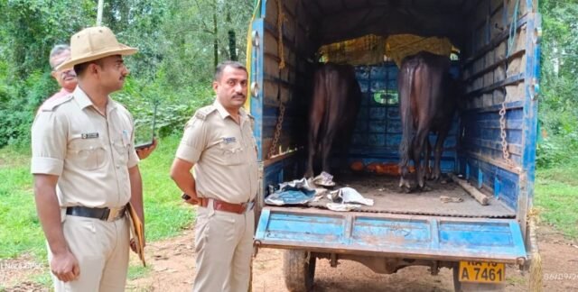 ಪ್ರಕರಣದ ವಿವರ : ಕುಂದಾಪುರ ತಾಲೂಕು ಹೊಸಂಗಡಿ ಗ್ರಾಮದ ಮುತ್ತಿನಕಟ್ಟೆಯ ಬಳಿ ಹೊಸಂಗಡಿ ಚೆಕ್ ಪೋಸ್ಟ್ ನಲ್ಲಿ ವಿನೋದ್ ಬಿ ಬಾಗಣ್ಣನವರ್ ಸಿಪಿಸಿ ಅಮಾಸೆಬೈಲು ಪೊಲೀಸ್ ಠಾಣೆ ಕರ್ತವ್ಯ ನಿರ್ವಹಿಸಿಕೊಂಡಿರುವಾಗ ದಿನಾಂಕ: 06.09.2025 ರಂದು ಬೆಳಿಗ್ಗೆ ಸಮಯ 06:00 ಗಂಟೆಗೆ ಹುಲಿಕಲ್ ಘಾಟಿ ಕಡೆಯಿಂದ ಚೆಕ್ ಪೊಸ್ಟ್ ಕಡೆಗೆ ಬರುತ್ತಿದ್ದ KA-15-7461 ನೇ TATA Intra ವಾಹನವೊಂದು ಬರುತ್ತಿದ್ದು ನೋಡಿ ವಾಹನ ನಿಲ್ಲುವಂತೆ ಚಾಲಕನಿಗೆ ಸೂಚನೆ ನೀಡಿದ್ದು ವಾಹನವನ್ನು ತಪಾಸಣೆ ಮಾಡಿದಾಗ ಹಿಂದುಗಡೆ ಬಾಡಿಯಲ್ಲಿ ಎರಡು ಕೋಣಗಳಿಗೆ ಯಾವುದೇ ಮೇವು ಅಹಾರ ನೀಡದೆ ಒಂದಕೊಂದು ತಾಗಿಕೊಂಡು ಹಿಂಸ್ಮಾಕವಾಗಿ ಕಟ್ಟಿ ಹಾಕಿ ತುಂಬಿರುವುದು ಕಂಡು ಚಾಲಕನಲ್ಲಿ ಈ ಬಗ್ಗೆ ವಿಚಾರಿಸಲಾಗಿ ಸದ್ರಿ ಜಾನುವಾರುಗಳನ್ನ ಮಾಂಸ ಮಾಡುವ ಉದ್ದೇಶ ದಿಂದ ವಧೆಗಾಗಿ ಕೊಂಡು ಹೋಗುತ್ತೀರುವುದಾಗಿ ತಿಳಿಸಿರುತ್ತಾರೆ. ಎರಡು ಕೋಣಗಳ ಅಂದಾಜು ಮೌಲ್ಯ 30,000/- ಮತ್ತು TATA Intra ವಾಹನದ ಮೌಲ್ಯ 04 ಲಕ್ಷರೂಪಾಯಿಗಳಾಗಬಹುದು. ಸದ್ರಿ ವಾಹನದಲ್ಲಿ ಇದ್ದ ಆರೋಪಿತರಾದ 1) ಬಸವರಾಜ (27) ತಂದೆ:ನಾಗರಾಜಪ್ಪ 2) ಮೇಘರಾಜ್ 3)ಲೋಹಿತ್ (27) ತಂದೆ: ಬಸವರಾಜಪ್ಪ 4)ಇಮ್ರಾನ್ (24) ತಂದೆ: ಖಲೀಲ್ ತಮ್ಮ ತಪ್ಪಿತ್ವದ ತಿಳುವಳಿಕೆ ನೀಡಿ ಸದ್ರಿ ಜಾನುವಾರು ಅವುಗಳನ್ನು ತಂದ ವಾಹನ ಸಮೇತ ಅಪಾದಿತರುಗಳನ್ನು ಪೊಲೀಸ್ ಠಾಣೆಗೆ ಹಾಜರುಪಡಿಸಿರುತ್ತಾರೆ.