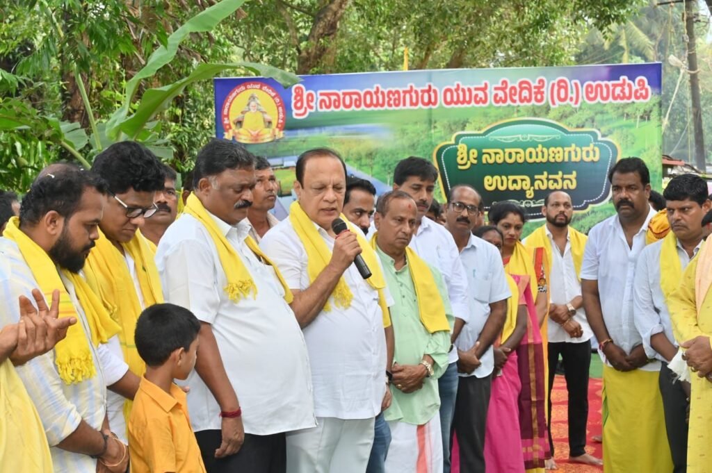 ಶ್ರೀ ನಾರಾಯಣ ಗುರುಗಳ ಸಮಾನತೆಯ ಸಂದೇಶ ಸಾರುವ ಮತ್ತು ಸಾಮರಸ್ಯದ ಸಂದೇಶ ಸಾರುವ ಶ್ರೀ ನಾರಾಯಣ ಗುರು ಯುವ ವೇದಿಕೆ (ರಿ) ಉಡುಪಿ ಇವರ ಮುತುವರ್ಜಿಯಲ್ಲಿ ಉಡುಪಿ ಬಲಾಯಿಪಾದೆ ಬಳಿ ಕುತ್ಪಾಡಿ ಗರಡಿ ರಸ್ತೆಯಲ್ಲಿ ರೂಪುಗೊಂಡಿರುವ 108 ಶ್ರೀ ಗಂಧದ ಮರಗಳ ನಡುವೆ ವಿಶೇಷವಾಗಿ ವಿನ್ಯಾಸಗೊಂಡಿರುವ ಶ್ರೀ ನಾರಾಯಣ ಗುರು ಉದ್ಯಾನವನದ ಶಿಲಾನ್ಯಾಸ ಕಾರ್ಯಕ್ರಮದಲ್ಲಿ ಭಾಗವಹಿಸಿ ಅವರು ಮಾತನಾಡಿದರು.