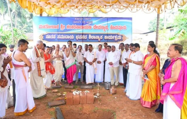 ಅವರು ಸೋಮವಾರ ಕೊಡವೂರು ಶ್ರೀ ಶಂಕರನಾರಾಯಣ ದೇವಸ್ಥಾನದ ವತಿಯಿಂದ ನಿರ್ಮಾಣಗೊಳ್ಳಲಿರುವ ನೂತನ ಸಮುದಾಯ ಭವನದ ಶಿಲಾನ್ಯಾಸವನ್ನು ನೆರವೇರಿಸಿ ಆಶೀರ್ವಚನ ನೀಡಿದರು. ಉದ್ಯಮಿ ಶ್ರೀಧರ್ ರಾವ್ ಕಲ್ಮಾಡಿ ಪುಣೆ ಅವರು ನೂತನ ಸಮುದಾಯ ಭವನಕ್ಕೆ ಭೂಮಿಪೂಜೆ ನೆರವೇರಿಸಿದರು.