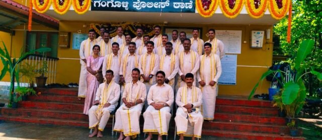 ದಿನಂಪ್ರತಿ ಖಾಕಿ ಬಟ್ಟೆಯಲ್ಲಿ ಕಾಣುತ್ತಿದ್ದ ಪೊಲೀಸರು ಇಂದು ಸಾಂಪ್ರದಾಯಿಕ ಶೈಲಿಯ ಬಿಳಿ ಕ್ರೀಮ್ ಕಲರಿನ ಬಟ್ಟೆ ತೊಟ್ಟು ಮಿಂಚಿದರು.