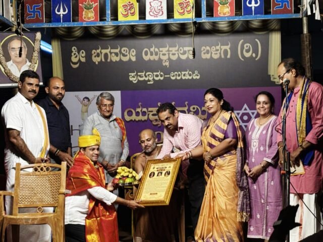 ಫೋಟೊ : ಕಾರ್ಯಕ್ರಮದಲ್ಲಿ ಪ್ರಸಿದ್ಧ ಸ್ತ್ರೀ ವೇಷಧಾರಿ, ಕಲಾವಿದ ಸಂತೋಷ್ ಹಿಲಿಯಾಣ ಇವರಿಗೆ 7ನೇ ವರ್ಷದ ‘ಯಕ್ಷ ಪ್ರದೀಪ್ತರತ್ನ ‘ ಪ್ರಶಸ್ತಿ ನೀಡಿ ಗೌರವಿಸಲಾಯಿತು.