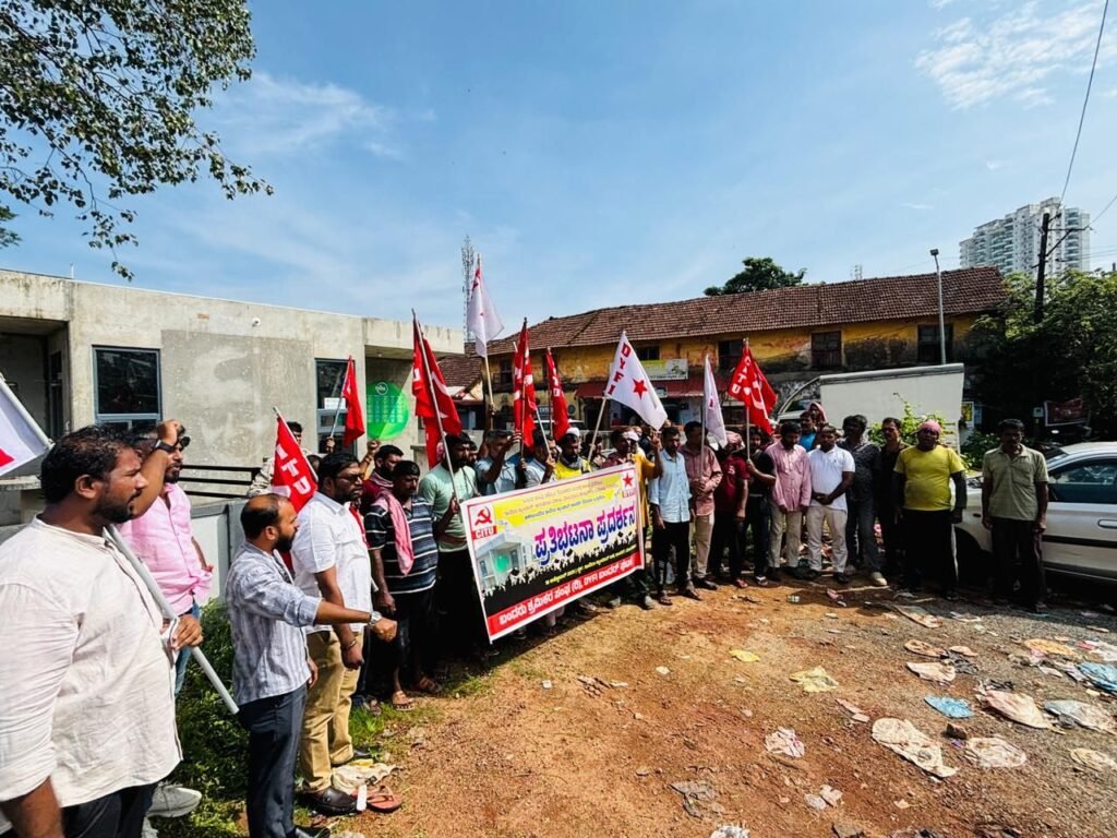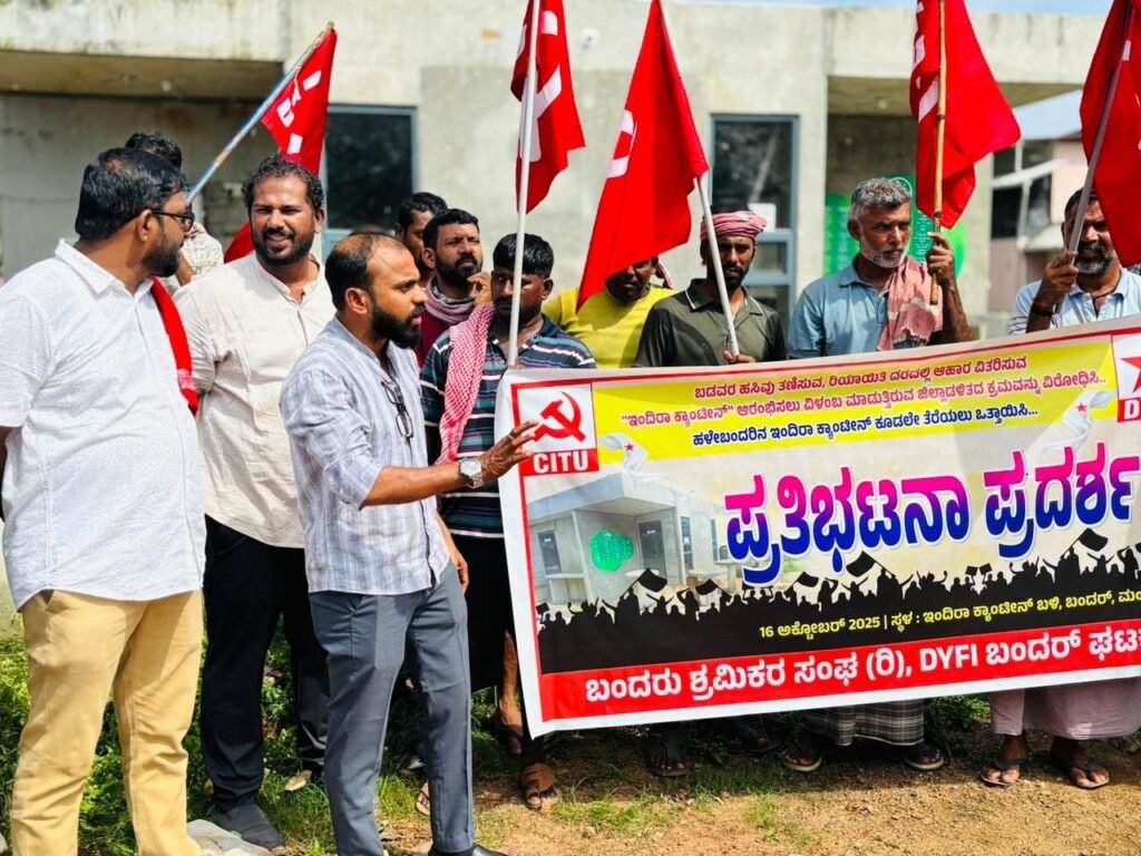 ಮಂಗಳೂರು : ಹಳೇಬಂದರು ಸಗಟು ಮಾರುಕಟ್ಟೆ ಹಮಾಲಿ ಕಾರ್ಮಿಕರು ಮೀನುಗಾರಿಕಾ ಧಕ್ಕೆಯಲ್ಲಿ ದುಡಿಯುವ ಕಾರ್ಮಿಕರು ಸರಕು ಸಾಗಾಟ ಲಾರಿ, ಟೆಂಪೋ ಚಾಲಕರು ಮೀನುಗಾರರು ಅತ್ಯಧಿಕ ಸಂಖ್ಯೆಯಲ್ಲಿ ಇರುವ ಬಂದರು ಪ್ರದೇಶದಲ್ಲಿ ಆದ್ಯತೆಯಲ್ಲಿ ನಿರ್ಮಿಸಿಕೊಡಬೇಕಿದ್ದ ಇಂದಿರಾ ಕ್ಯಾಂಟೀನನ್ನು ತೆರೆಯದೆ ನಿರ್ಲಕ್ಷ್ಯ ಮಾಡಿರುವ ಜಿಲ್ಲಾಡಳಿತದ ಕ್ರಮವನ್ನು ವಿರೋಧಿಸಿ, ಕೂಡಲೇ ಇಂದಿರಾ ಕ್ಯಾಂಟೀನ್ ಸೇವೆ ಆರಂಭಿಸಲು ಒತ್ತಾಯಿಸಿ ಇಂದು ಹಳೆ ಬಂದರು ಹಳೆ ಮುನ್ಸಿಪಲ್ ಕಚೇರಿ ಬಳಿ ನಿರ್ಮಾಣಗೊಂಡಿರುವ ಇಂದಿರಾ ಕ್ಯಾಂಟೀನ್ ಎದುರು ಬಂದರು ಶ್ರಮಿಕರ ಸಂಘ ಮತ್ತು ಡಿವೈಎಫ್ಐ ಬಂದರು ಘಟಕದ ನೇತೃತ್ವದಲ್ಲಿ ಪ್ರತಿಭಟನೆ ನಡೆಯಿತು.
