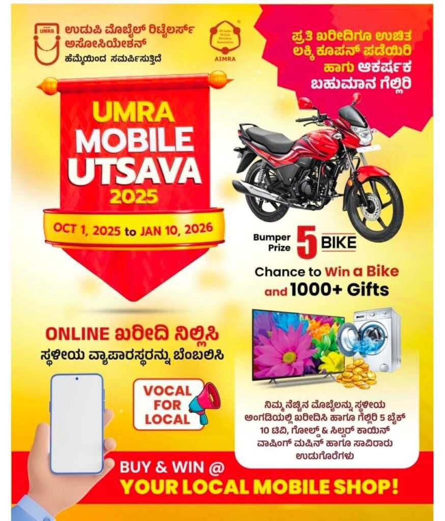 ಕಳೆದ 38 ವರ್ಷದಿಂದ ಗ್ರಾಹಕರ ವಿಶ್ವಾಸವನ್ನು ಗೆದ್ದು, ಗ್ರಾಹಕರಿಗೆ ಅತ್ಯುತ್ತಮವಾದ ಸೇವೆಯನ್ನು ಸಲ್ಲಿಸುತ್ತಿರುವ, ಗ್ರಾಹಕರ ನಂಬಿಕೆಗೆ ಹೆಸರುವಾಸಿಯಾಗದ ಬಲ್ಲಾಳ್ ಮೊಬೈಲ್ಸ್’ನಲ್ಲಿ ಗ್ರಾಹಕರ ಪ್ರತಿ ಮೊಬೈಲ್ ಫೋನ್ ಖರೀದಿಗೆ ಬಂಪರ್ ಪ್ರೈಸ್, ಸ್ಕ್ರಾಚ್ & ವಿನ್ ಕಾರ್ಡ್ ಮತ್ತು ಗ್ರಾಹಕರಿಗೆ ಐದು ಭರ್ಜರಿ ಕೊಡುಗೆಗಳ ಅವಕಾಶವನ್ನು ಕಲ್ಪಿಸಿದೆ.