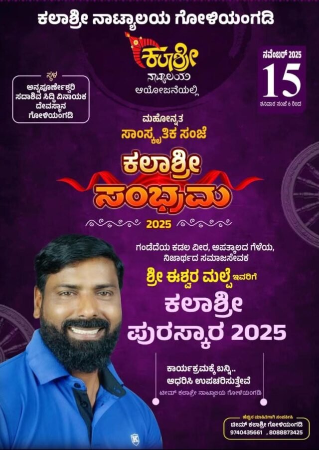 ಇದೇ ಕಾರ್ಯಕ್ರಮದಲ್ಲಿ ಗಂಡೆದೆಯ ಕಡಲ ವೀರ, ಆಪತ್ಕಾಲದ ಗೆಳೆಯ, ನಿಜಾರ್ಥದ ಸಮಾಜಸೇವಕ, ಈಶ್ವರ ಮಲ್ಪೆಯವರಿಗೆ ಕಲಾಶ್ರೀ ಪುರಸ್ಕಾರ 2025 ನೀಡಿ ಪುರಸ್ಕರಿಸಲಾಗುತ್ತದೆ ಎಂದು ಟೀಮ್ ಕಲಾಶ್ರೀ ನಾಟ್ಯಾಲಯ ಗೋಳಿಯಂಗಡಿ ಪ್ರಕಟಣೆಯಲ್ಲಿ ತಿಳಿಸಿದೆ.